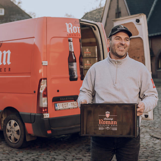 "Al 11,5 jaar vervoer ik de bestellingen van de brouwerij naar de klanten. Een droomjob! Na jaren werken in de bouwsector kwam ik bij Brouwerij Roman terecht. Als ik eerder had geweten hoe tof deze job is, was ik nooit in de bouwsector begonnen. Elke avond ontvangen we een overzicht van de klanten die we daags nadien moeten bedienen. We bespreken dan samen met de chef hoe we de reis zullen indelen. We houden daarbij rekening met de openings- of sluitingsuren en wensen van de klanten. Het kan dus zijn dat we de ene dag heel vroeg of de andere dag wat later vertrekken."